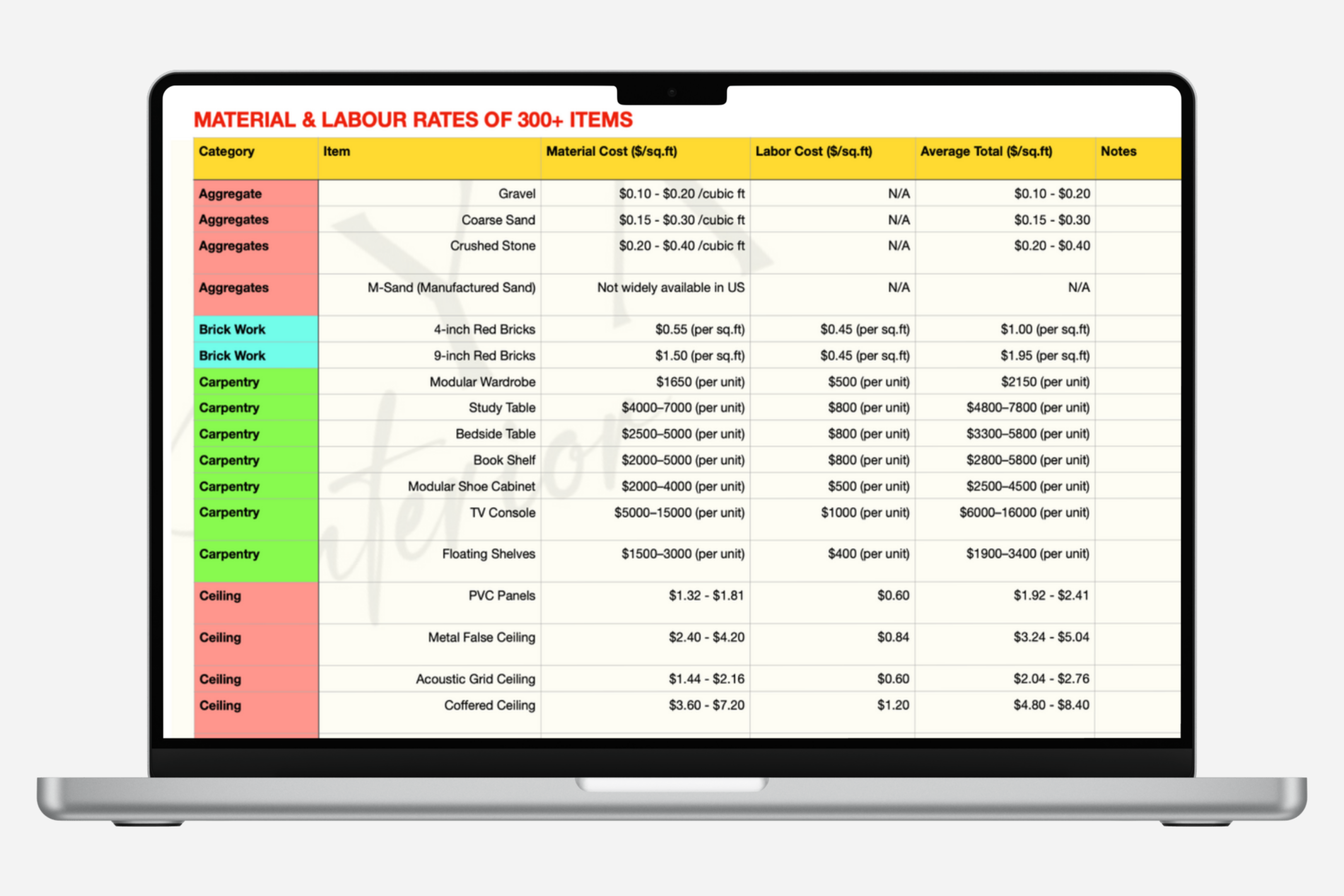 300+ Material & Labor Cost Cheat Sheet: A reference to help you prepare accurate BOQs with ease. (Rates are collected from different vendors, cannot be used as a replacement, only made for getting a rough idea about the costing in market)